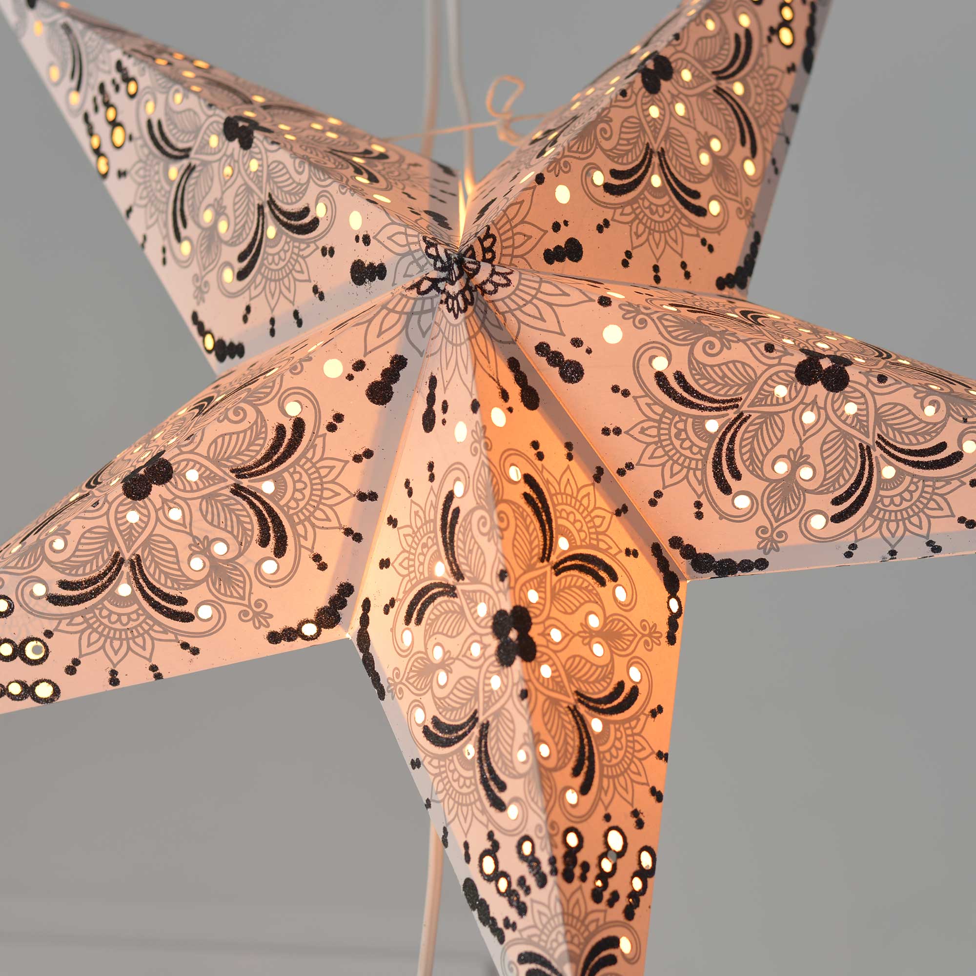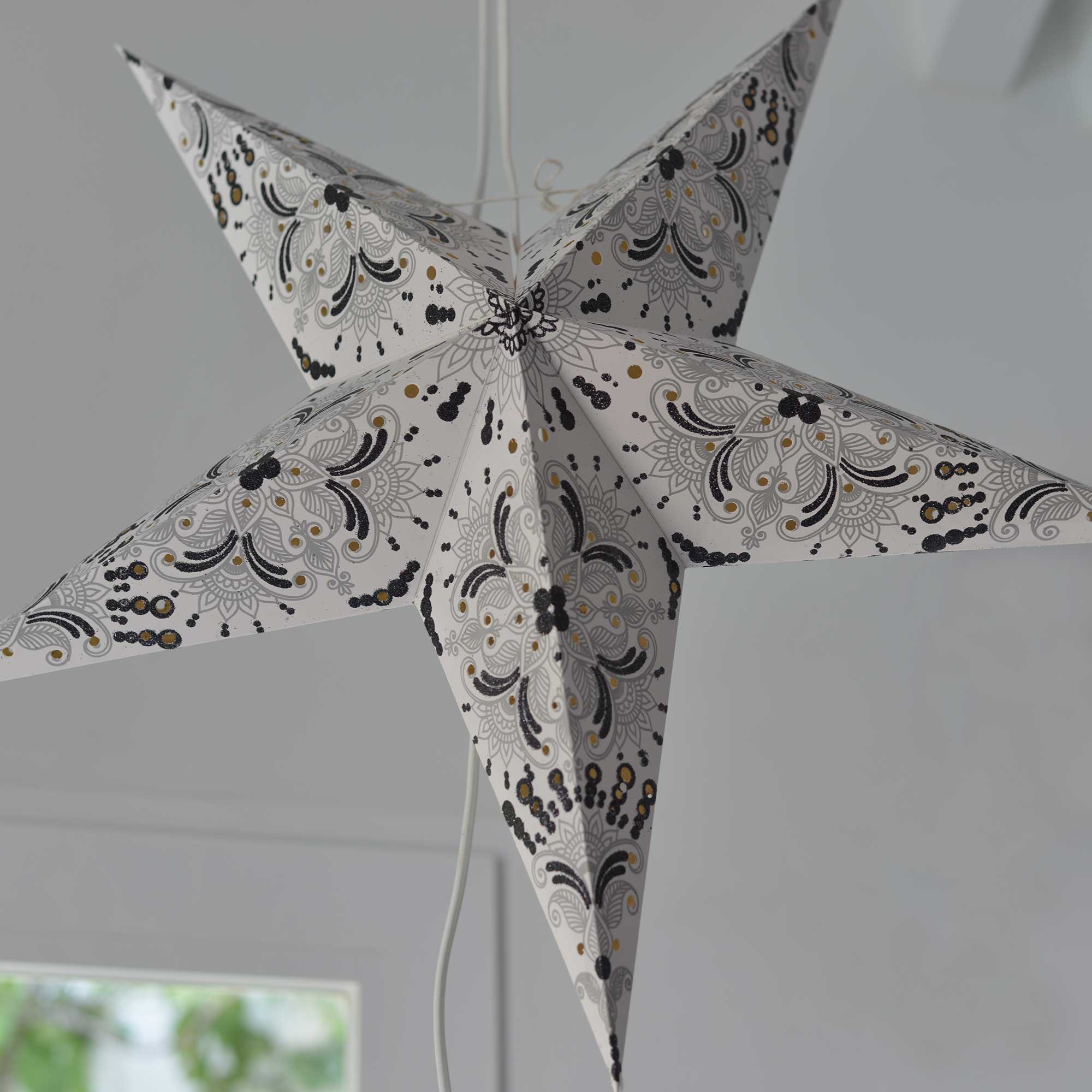 Illuminate your space with the exquisite Queen Star Paper Lamp in White. Handcrafted with intricate details, this lamp features elegant ✨black glitter✨ accents and transparent paper glass effect. Elevate your room with a touch of luxury and sophistication.
